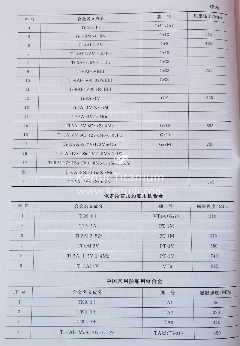 以下列出船舶工業(yè)中常用的鈦合金及它們使用的部位和原則