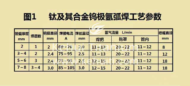 鈦管的焊接參數(shù)非常重要,常用鈦合金管的焊接工藝參數(shù)見圖1。