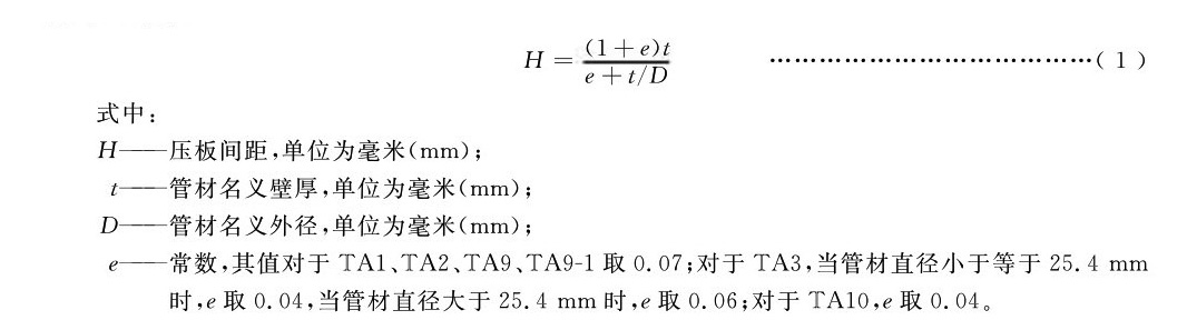 3.5.1.1管材應進行壓扁試驗.壓至規定的間距H時,管材表面不應出現裂紋,壓板之間的距離H按式(1)計算: