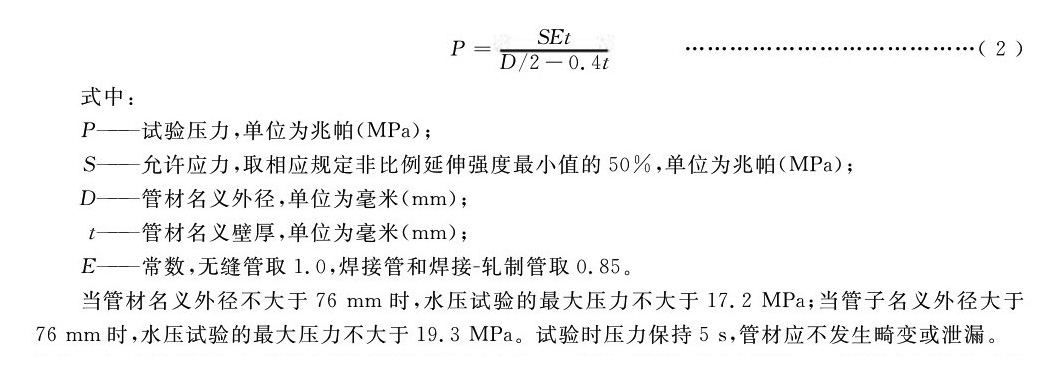 3.5.3.2 液壓試驗時,需方選定的試驗壓力度在合同中注明。合同中未注明時,試驗壓力按式(2)