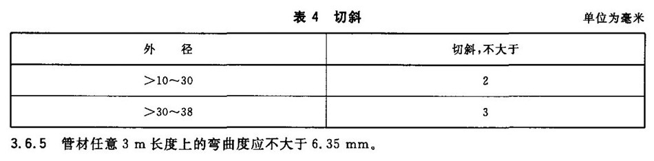 3.6.4管材兩端應切平整,不應有毛刺,切斜應符合表4的規定。