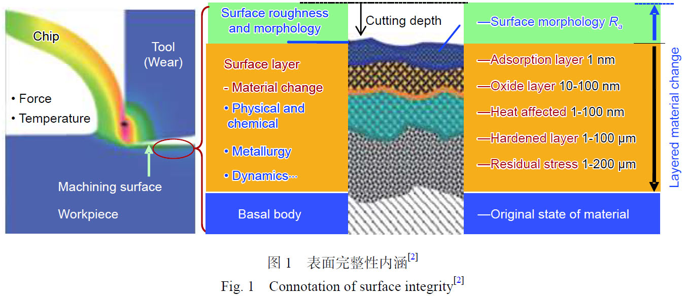鈦合金作為一種高強(qiáng)度合金,具有質(zhì)量輕、強(qiáng)度高、耐高溫、抗疲勞等優(yōu)異性能,是制造航空航天、國防等領(lǐng)域的重大裝備與新型戰(zhàn)略武器中關(guān)鍵構(gòu)件的重要金屬材料,特別是飛機(jī)的骨架、蒙皮、緊固件、起落架以及風(fēng)扇/壓氣機(jī)轉(zhuǎn)子葉片、輪盤和整體葉盤、齒輪、機(jī)匣等轉(zhuǎn)動、傳動和主承力件等。在商用航空發(fā)動機(jī)和軍用航空發(fā)動機(jī)中鈦合金的含量分別占到其質(zhì)量的30%~40%[4]。鈦合金材料加工過程中切削力大、溫度高,導(dǎo)致刀具磨損快、加工過程時(shí)變性增強(qiáng),雖然保證了構(gòu)件的尺寸和形位精度滿足設(shè)計(jì)要求,但是工件表面會出現(xiàn)加工刀痕、棱邊損傷、表面微裂紋、加工硬化、組織損傷等表面完整性問題。因此,有必要對鈦合金切削加工中工藝條件對切削力、切削溫度的影響規(guī)律,以及切削力和切削溫度建模預(yù)測;根據(jù)不同加工條件下產(chǎn)生的表面粗糙度和形貌、殘余應(yīng)力場、顯微硬度場、微觀組織變化等方面,探究熱力耦合作用對表面完整性形成的影響機(jī)制,為完成表面完整性預(yù)測,實(shí)現(xiàn)表面完整性精準(zhǔn)控制,滿足長壽命和高可靠的服役性能要求提供理論支撐。