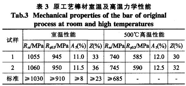 原工藝棒材室溫及高溫力學(xué)性能見表3。試樣取自棒材長度方向靠近外側(cè)面。