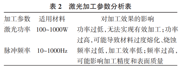 該技術(shù)適用于碳纖維復合材料、鈦合金以及耐熱合金等,如表 2 所示。激光加工的效率極高,能在短時間內(nèi)完成大規(guī)模的加工任務,且具有較高的精度與較小的熱影響區(qū),從而確保了工件在加工后形變小且精確度高。此外,它還能夠?qū)崿F(xiàn)細微復雜的加工需求,特別適合于制造需要高度精密和復雜結(jié)構(gòu)的部件。然而,值得注意的是,由于激光加工設備的價格較高,這成為限制其更廣泛使用的一個重要因素,特別是對于資金有限的小型企業(yè)而言,高昂的成本可能會構(gòu)成障礙。