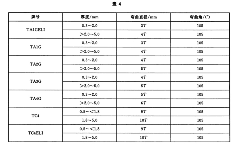 厚度不大于5.0mm的板材應進行彎曲試驗,彎曲直徑和彎曲角應符合表4的規(guī)定。彎曲后彎曲部位應無裂紋。