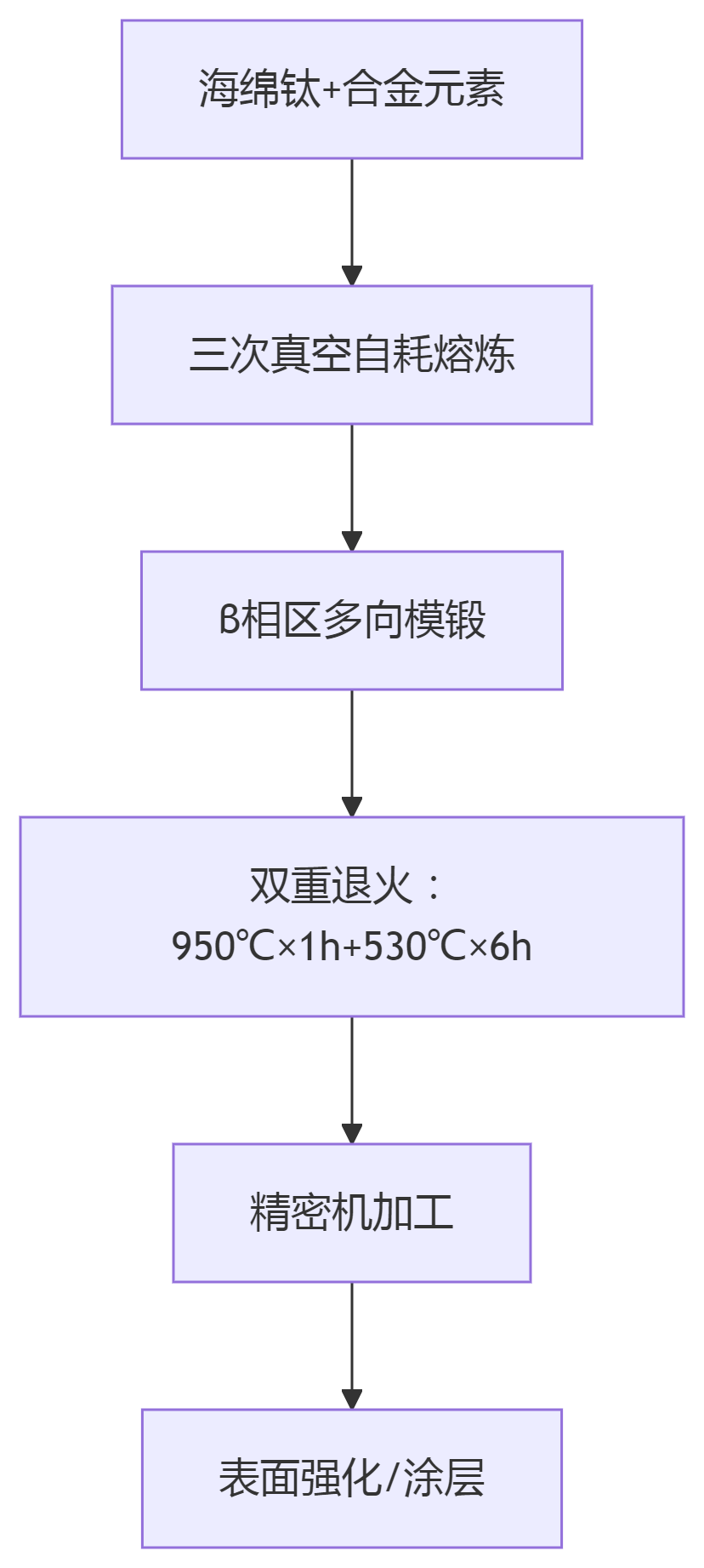 Al穩(wěn)定α相,Mo/Zr強(qiáng)化β相并提升熱穩(wěn)定性;Si抑制蠕變(500℃蠕變強(qiáng)度≥590MPa)。